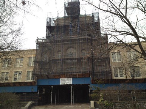 A tab at the top of this page is “Eye on Public Projects.” Check it out. Bronx Matters will regularly check up on public construction and rehab work all over the borough, like we did with the status of a series of improvements to DeWitt Clinton High School (photo above). If you know of a project that might be experiencing delays, or just one that you have questions about, email us at bronxmatters-at-gmail.com and we’ll try our best to look into it. In the meantime, click that tab above or right here to see what we have in our sights so far.